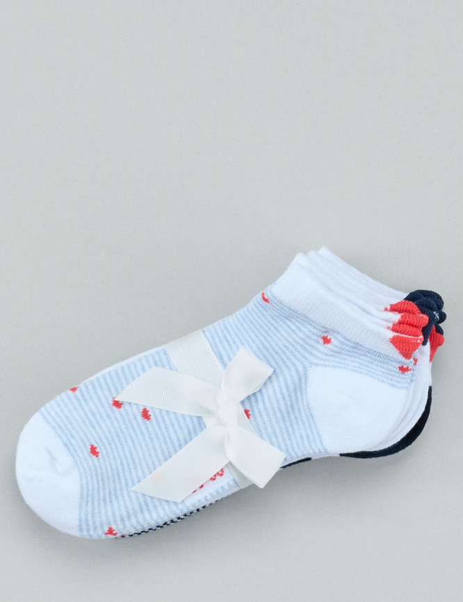 • 2 paires unies, 3 décorées de cœurs et d'étoiles