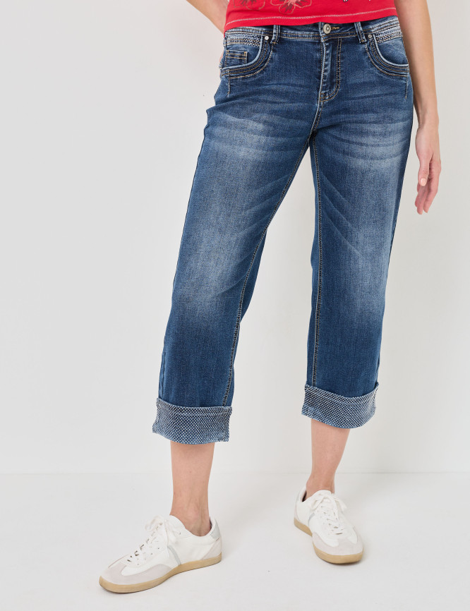 Jean 7/8 à revers pailleté