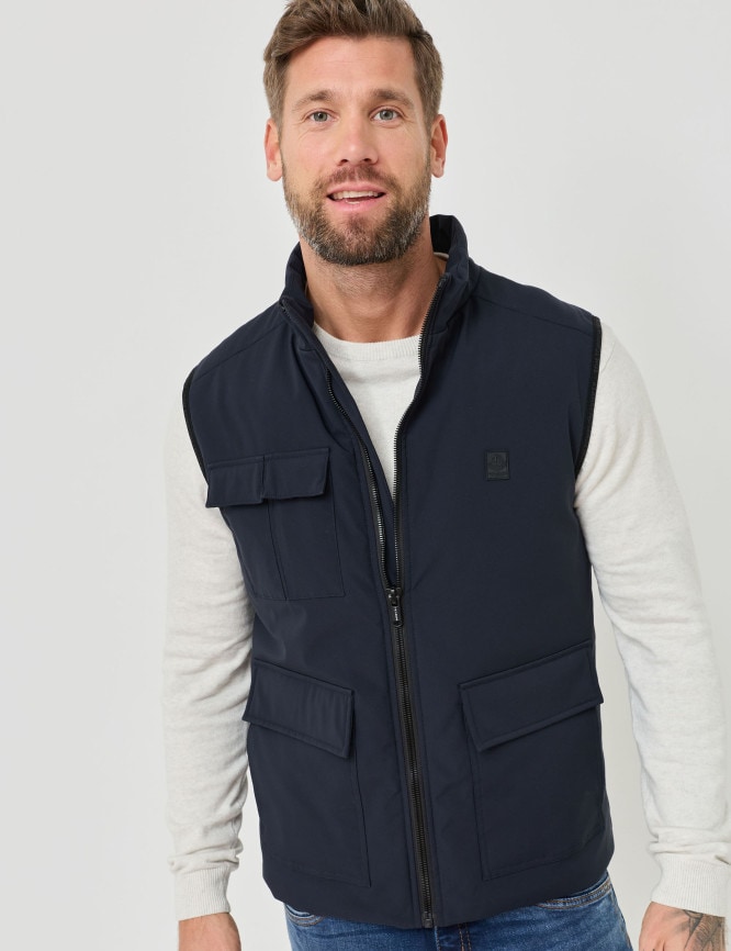- Design sportif avec poches : deux poches poitrine étroites à droite et deux poches plaquées à rabat