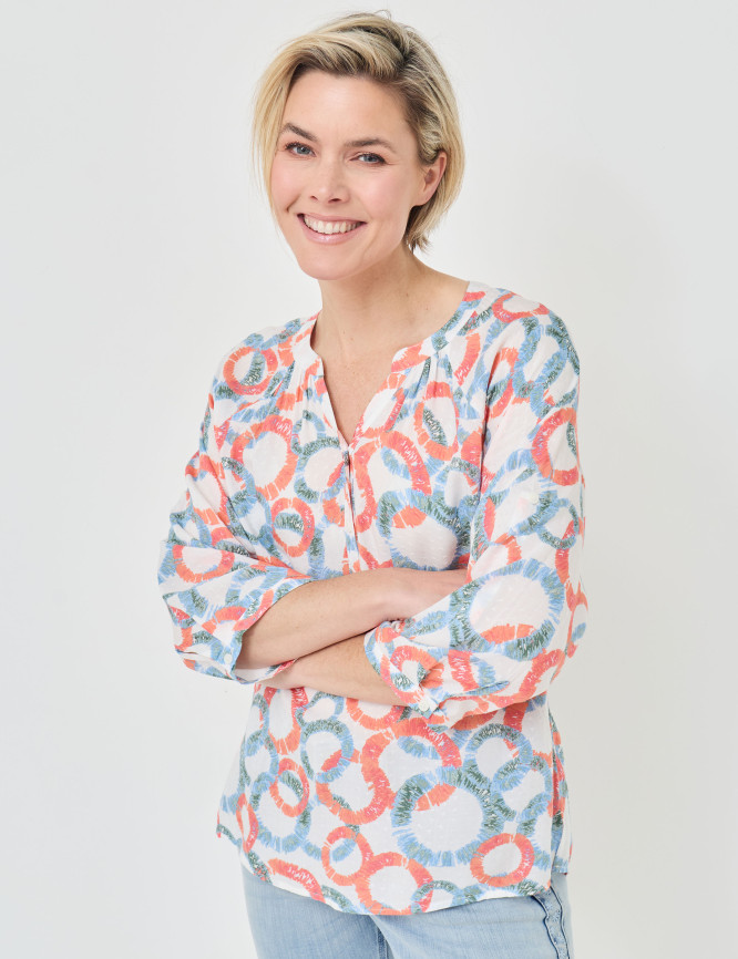 - Blouse d'été merveilleusement légère avec un imprimé coloré sur toute la surface