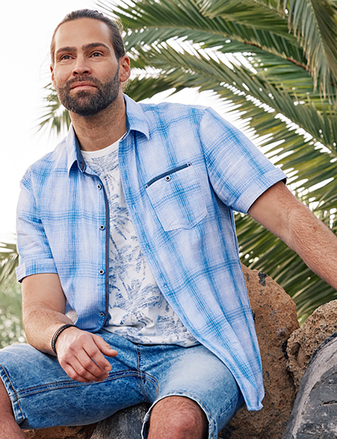 • Reine, hautsympathische Baumwolle mit gewebtem Karomuster-in sich dezent gestreift