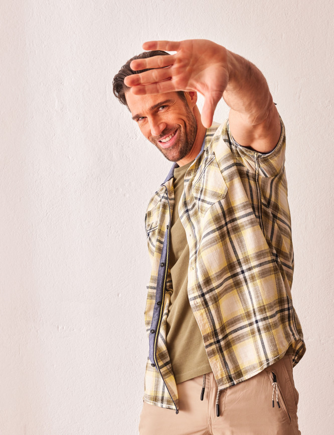 • Carreaux tissés tendance dans de superbes nuances de vert, parfaits avec du denim