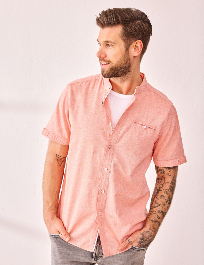 • Col montant, patte de boutonnage sur toute la longueur et poche passepoilée étroite et boutonnée