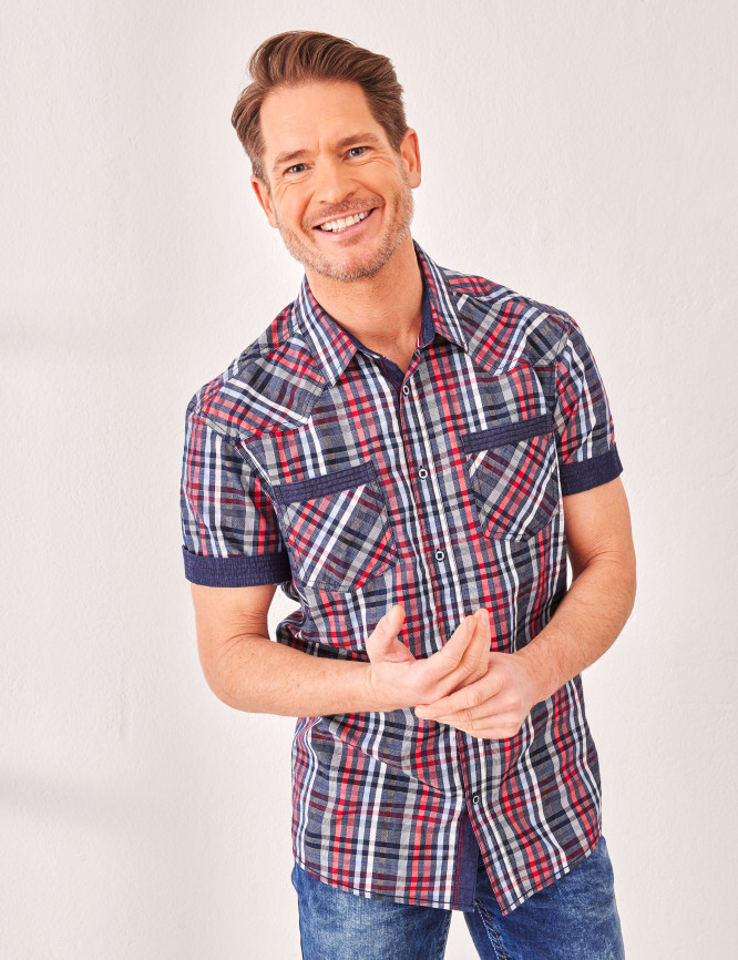 • Chemise décontractée à carreaux à manches courtes sportives