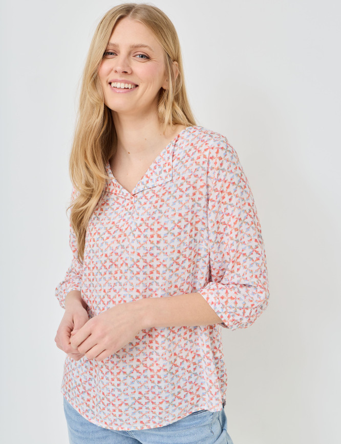 - Blouse tendance à enfiler, dotée d'une encolure en V confortable et d'une courte patte de boutonnage.