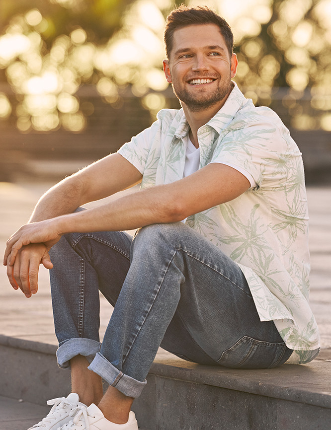 • Chemise à manches courtes avec col Kent et poche poitrine étroite