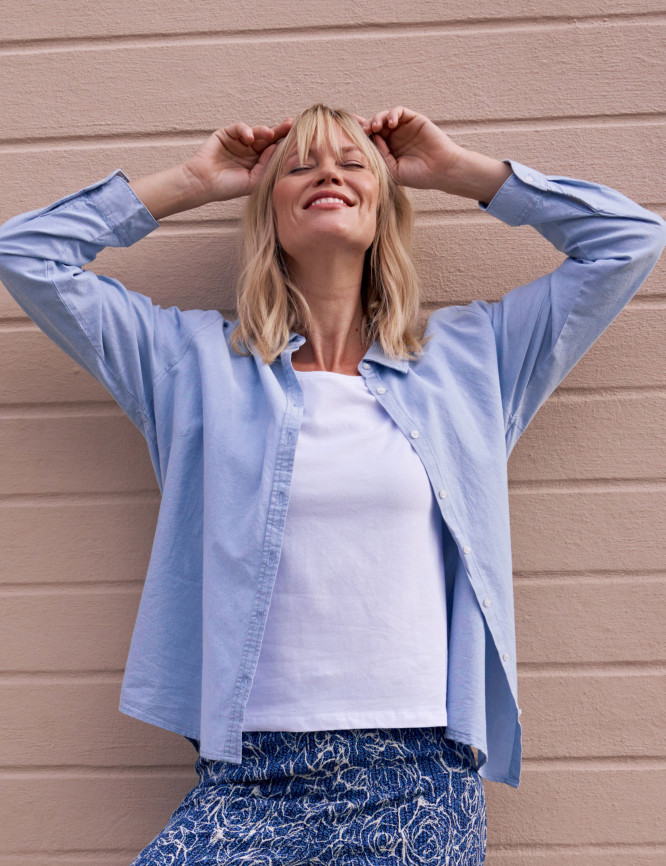 • Avec col Kent classique et patte de boutonnage sur toute la longueur