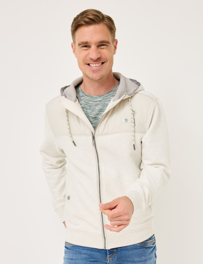 Kapuzen-Sweatjacke im Materialmix
