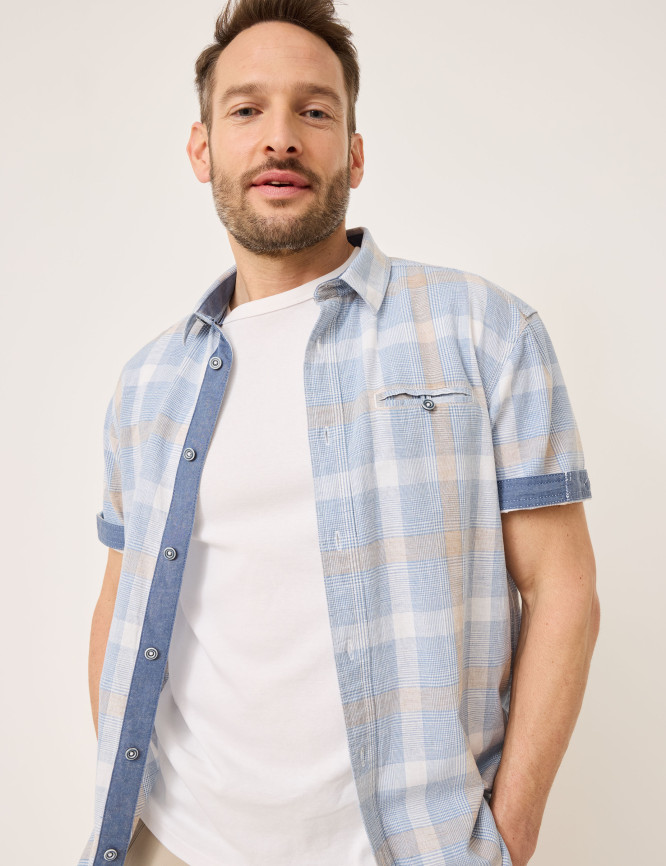 Chemise à carreaux en mélange coton/lin