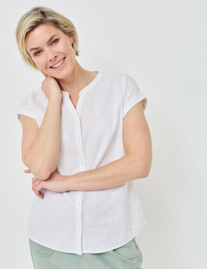 • Aus angenehmem, atmungsaktivem Leinen-Viskose-Mix