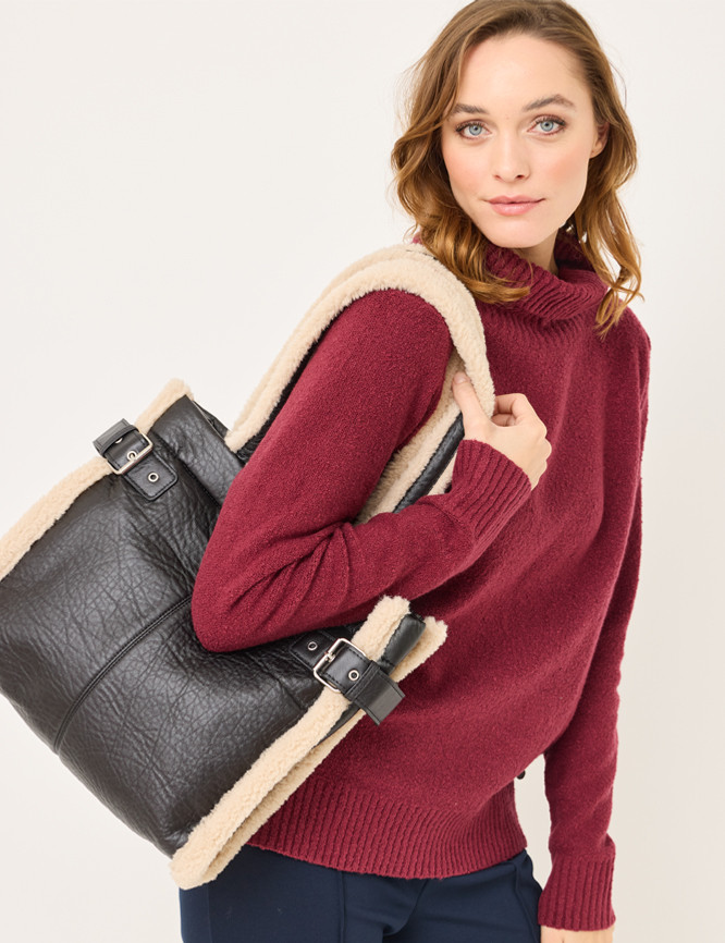 • Dekoratife Fake Fur Einsätze zieren die Henkel und die Seiten