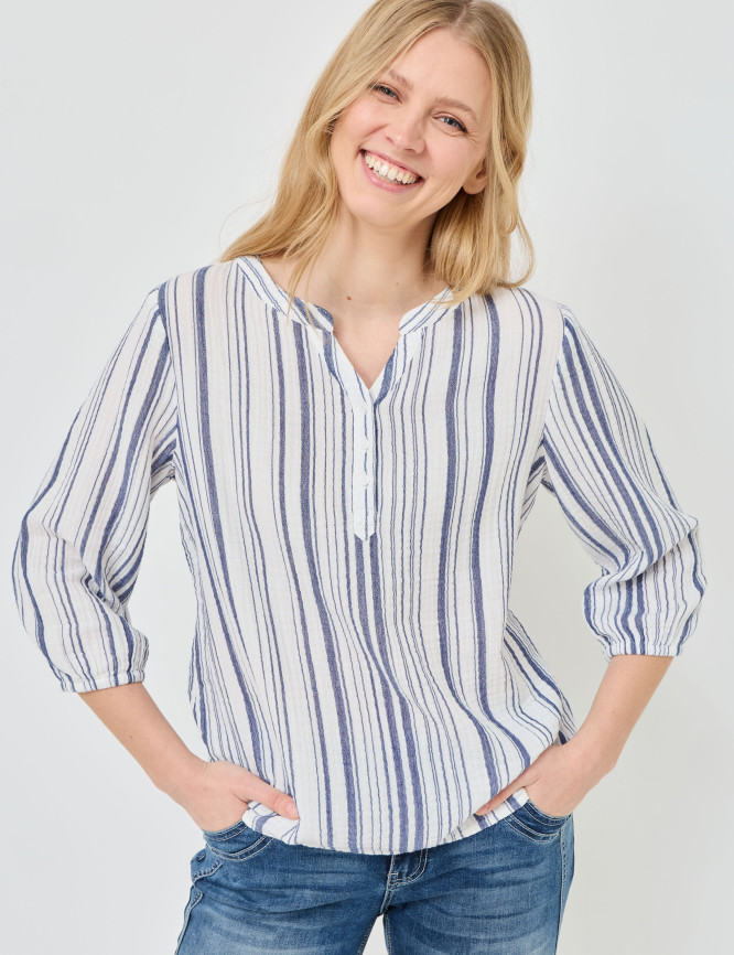 • Col Henley féminin avec patte de boutonnage raccourcie