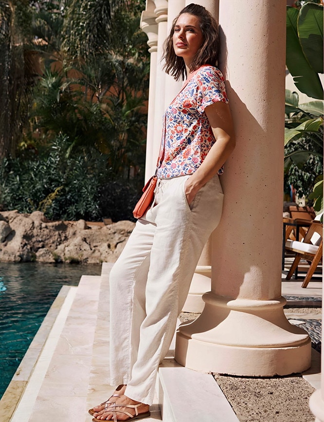 Pantalon à enfiler aspect lin