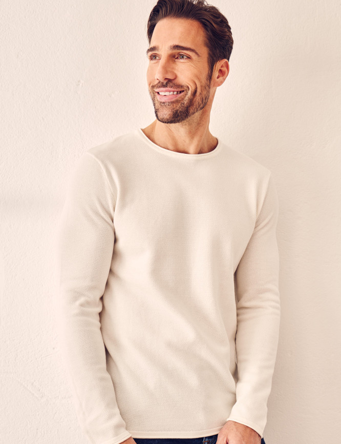 Pull col rond, maille structurée