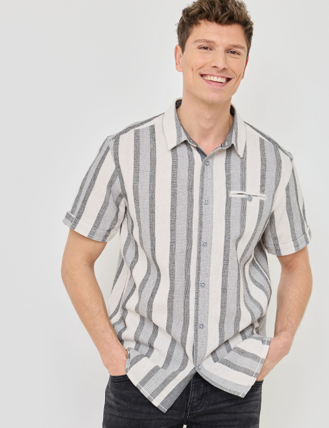 • Col Kent, patte de boutonnage complète et manches courtes avec ourlet et pattes de serrage