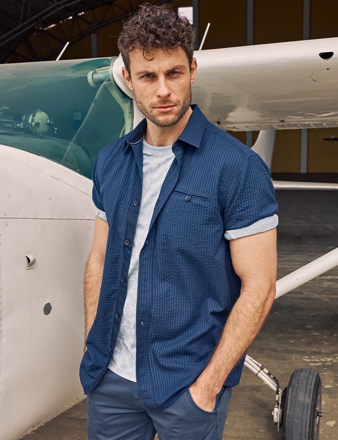 Chemise en seersucker à structure rayée