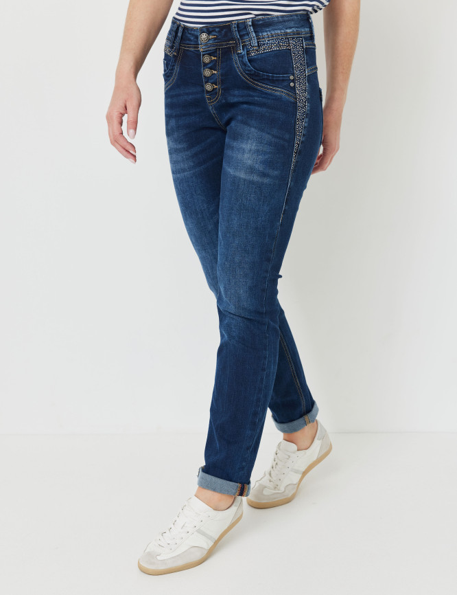 • Poches latérales et arrière avec surpiqûres et rivets décoratifs
