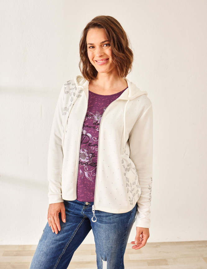 • Feminine Kapuzenjacke mit raffiniertem Glitzerprint und Strasssteinchen