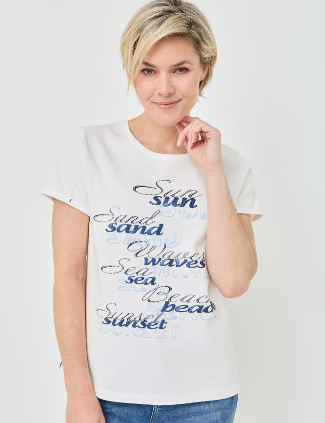 T-shirt doux avec inscription pailletée
