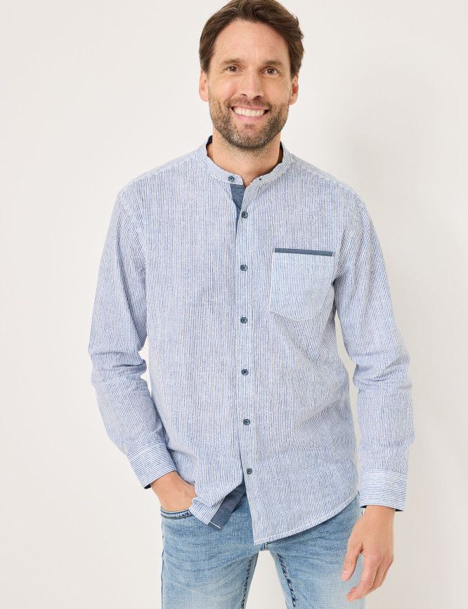 Chemise col montant, détails contrastés