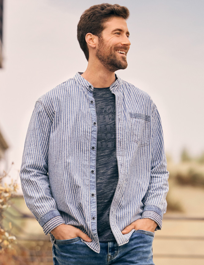Chemise col montant à motif rayé