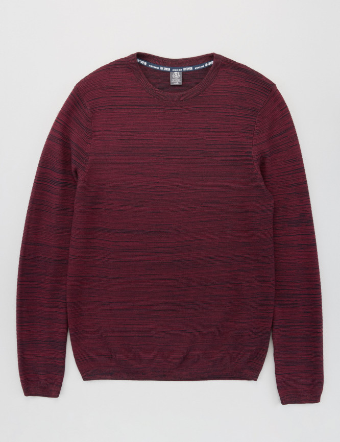 • Maille fine avec une structure à fines rayures et un effet chiné