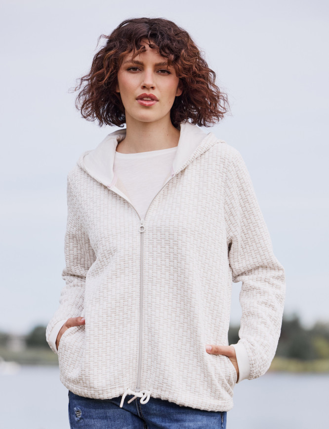 • Veste à capuche douce en double face léger avec motif structuré tendance