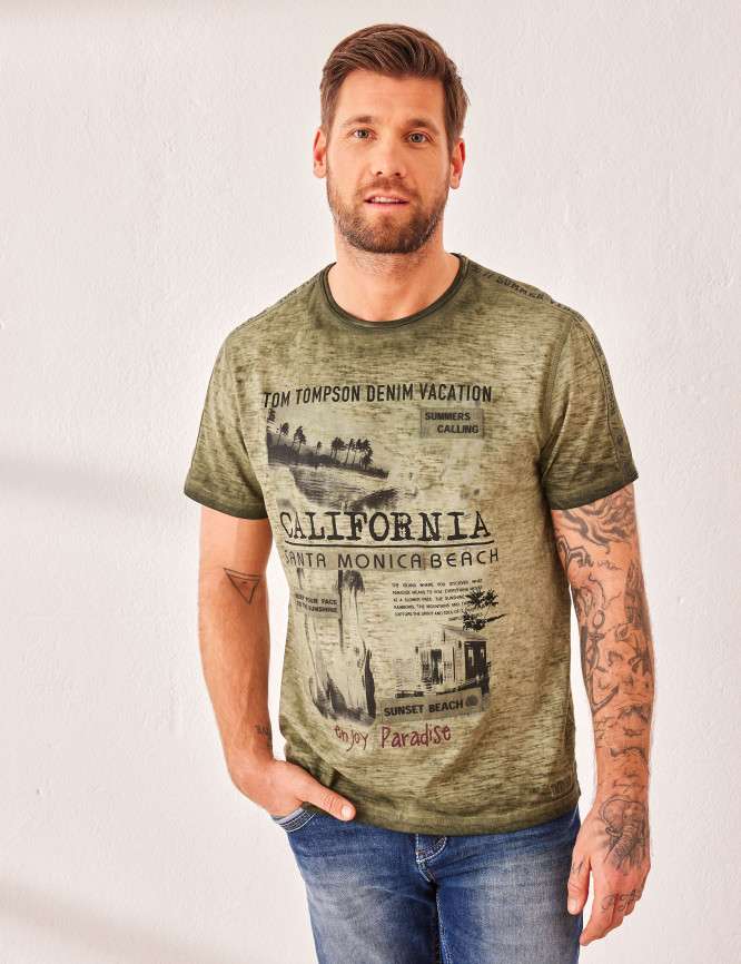 • Jersey simple doux avec un effet délavage tendance et une photo et un texte imprimés expressifs sur le devant