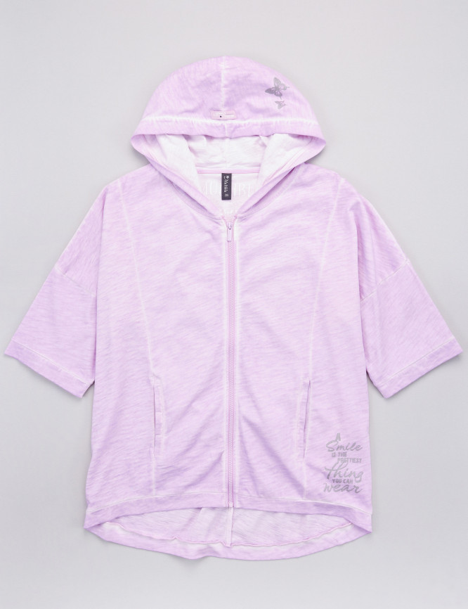 • Mit Kapuze und durchgehendem Zipper
