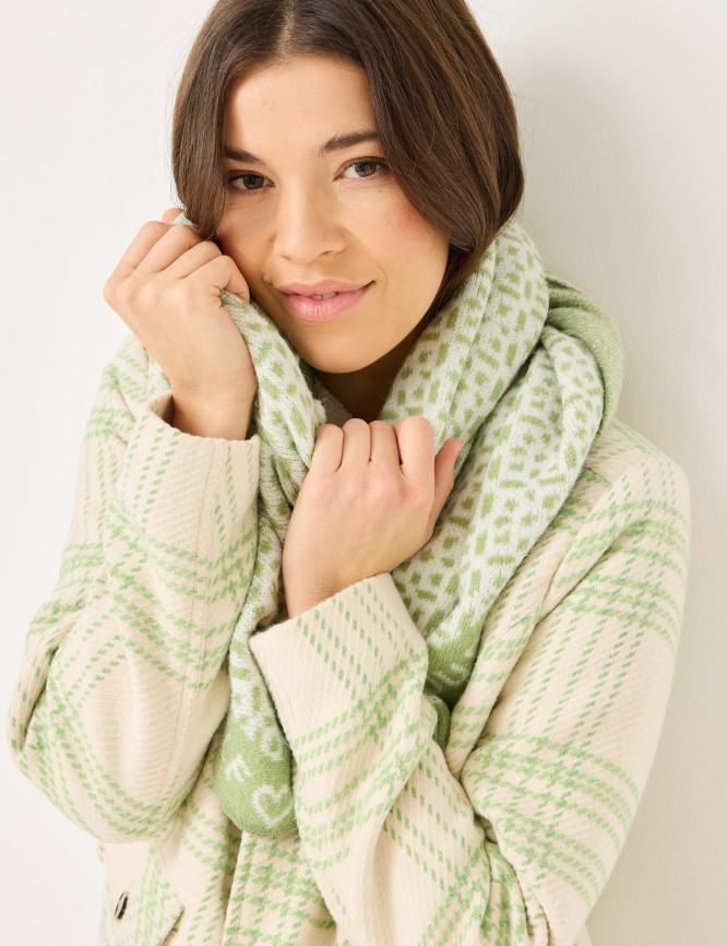 • Softer Dreieck-Schal mit modischem Jacquardmuster und Wording-Kante