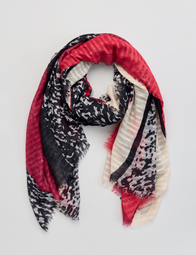 • Écharpe à rayures tissées tendance et imprimé abstrait